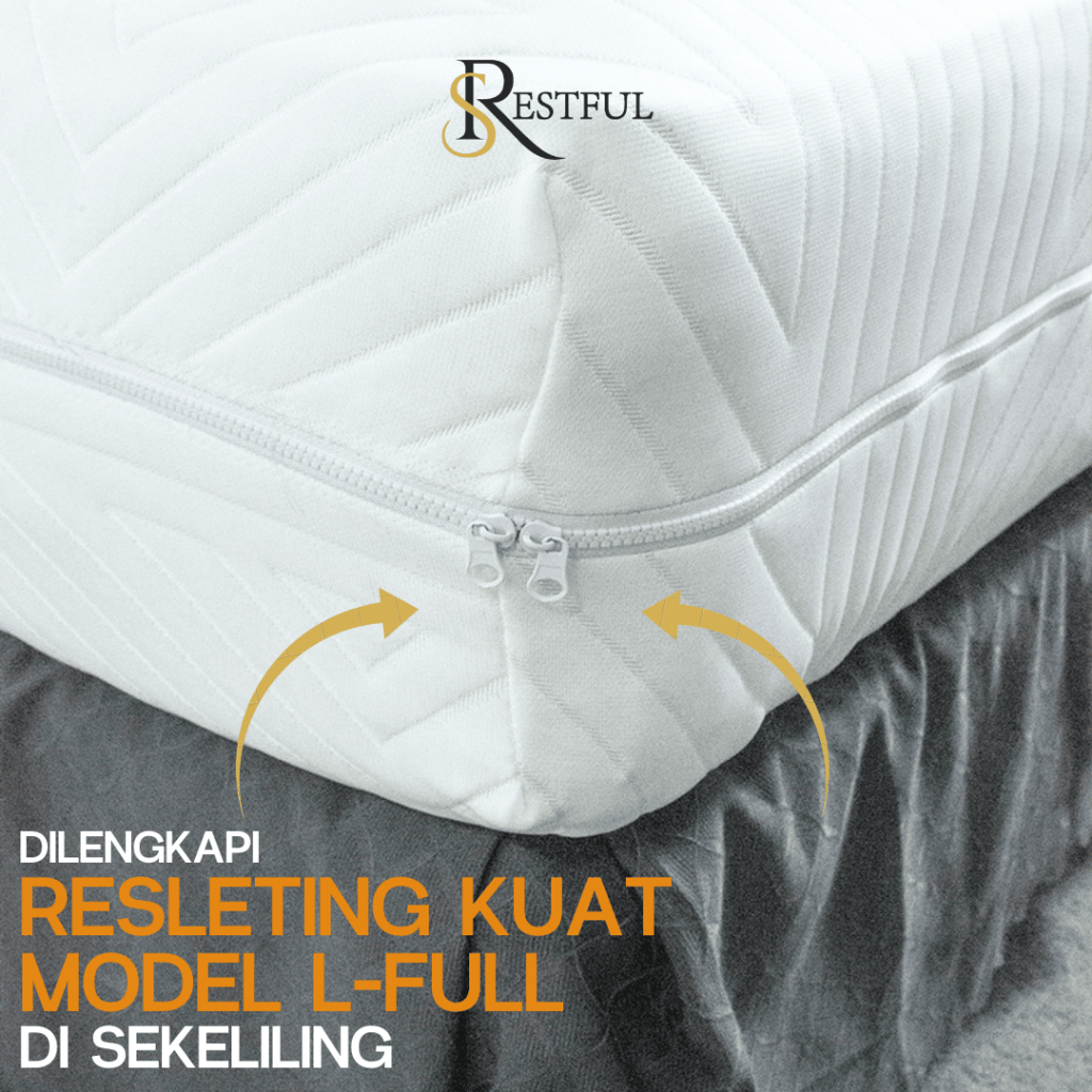 Sarung Kasur Premium Restful Non-Waterproof (Tinggi 5, 10, 35, 40cm) Resleting Pelindung Matras Murah Gratis Ongkir