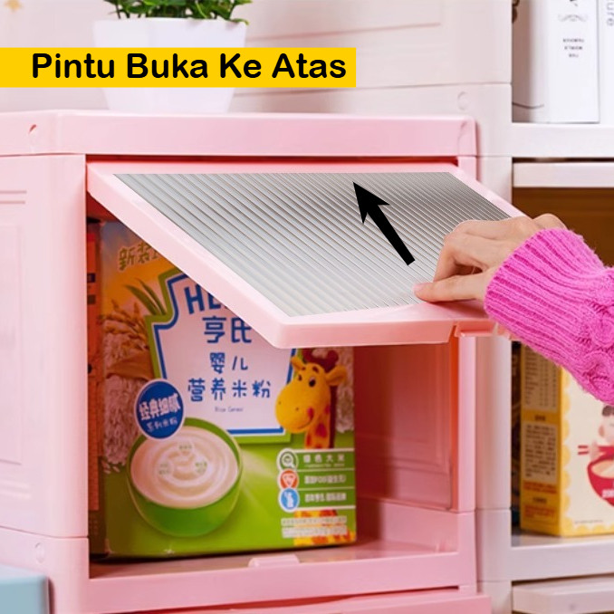 MIKE Lemari Pakaian Plastik OCLA FLIP UP Lemari Susun Rak Sepatu Pintu Transparan Geser Atas Roda Murah Gratis Ongkir
