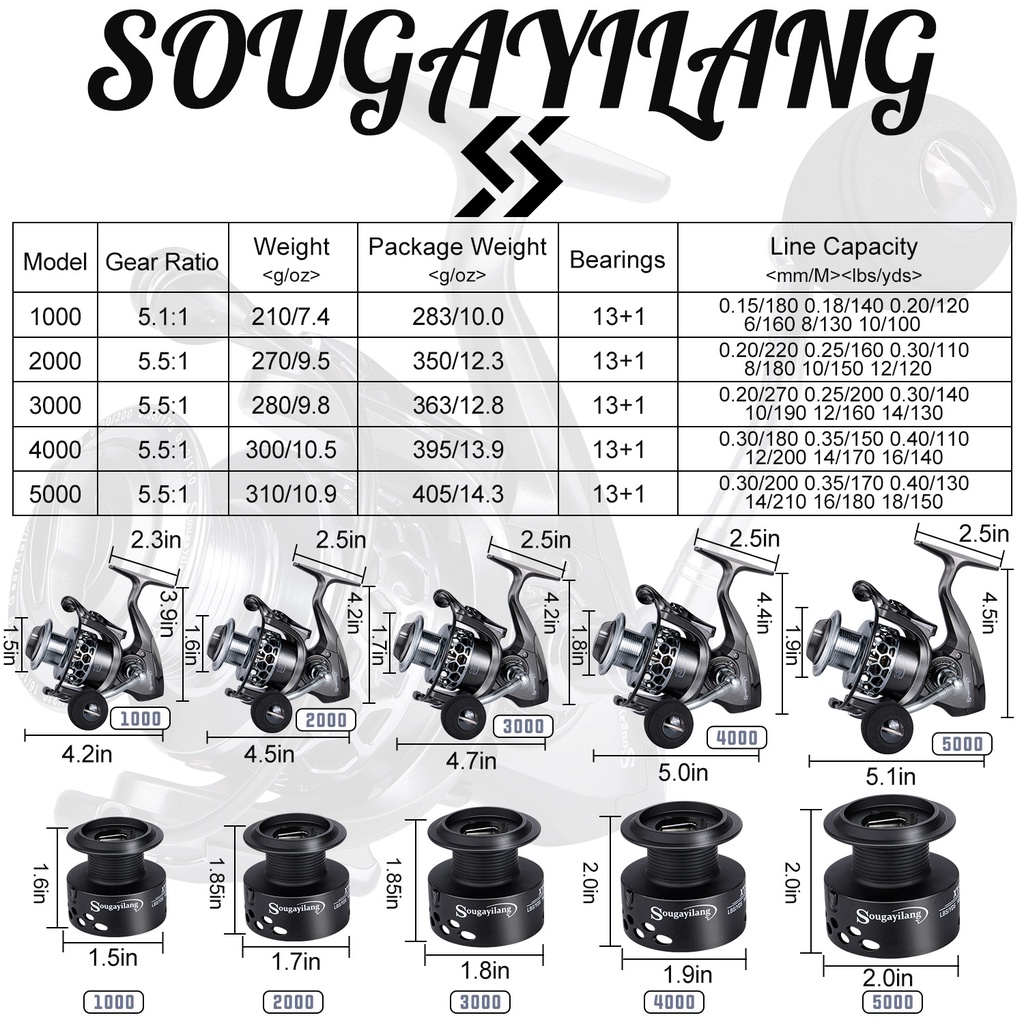 Sougayilang Power Handle Reel Pancing 1000-5000 5.5:1 Rasio kecepatan rotasi 14BB gulungan berputar reel CNC handle