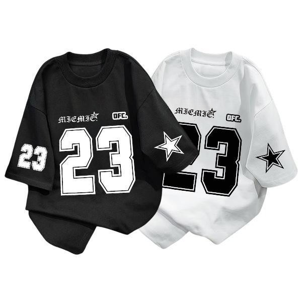 (Dikirim dalam 24 jam)MIEMIE. Kaos T-shirt Vintage No 23 Oversize Atasan Motif Baju Jersey Olahraga Nomor Angka 23