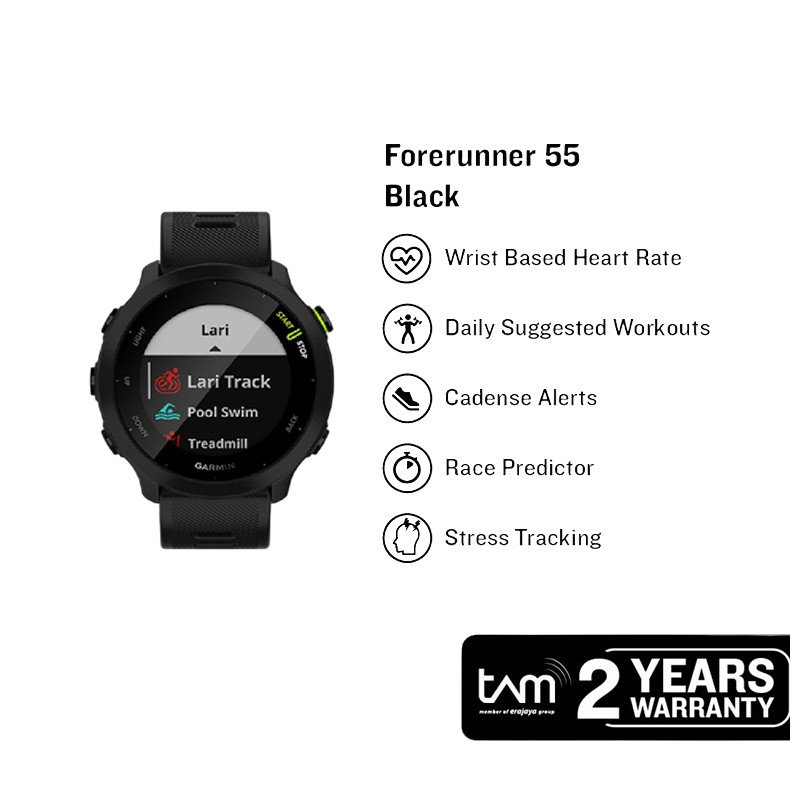 Jam Tangan Unisex Garmin Forerunner 55 010-02562-5A / 010-02562-50 Smartwatch Digital Dial Black Rubber Strap