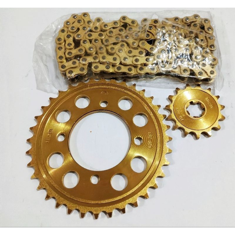 GEAR SET GIR SET kuningan mengkilap YAMAHA JUPITER Z GIR DEPAN 15 T GIR BELAKANG 36T RANTAI 428-104 RANTAI DAN GIR MOTOR JUPITER