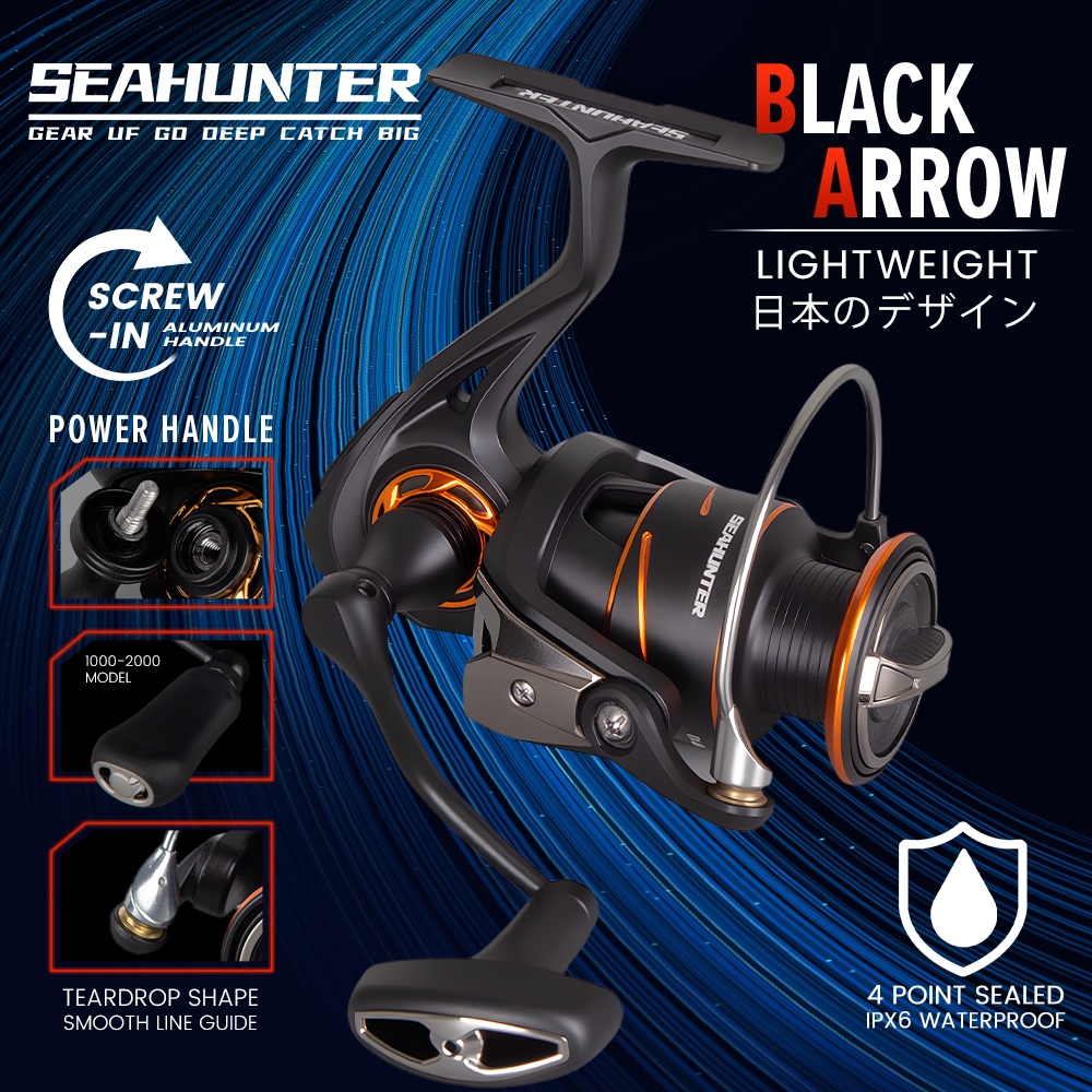 [OFFICIAL]SEAHUNTER BLACK ARROW Reel Pancing Power Handle Spinning Reel,Hendel Reel Ukuran 1000-3000,Kumparan Dangkal