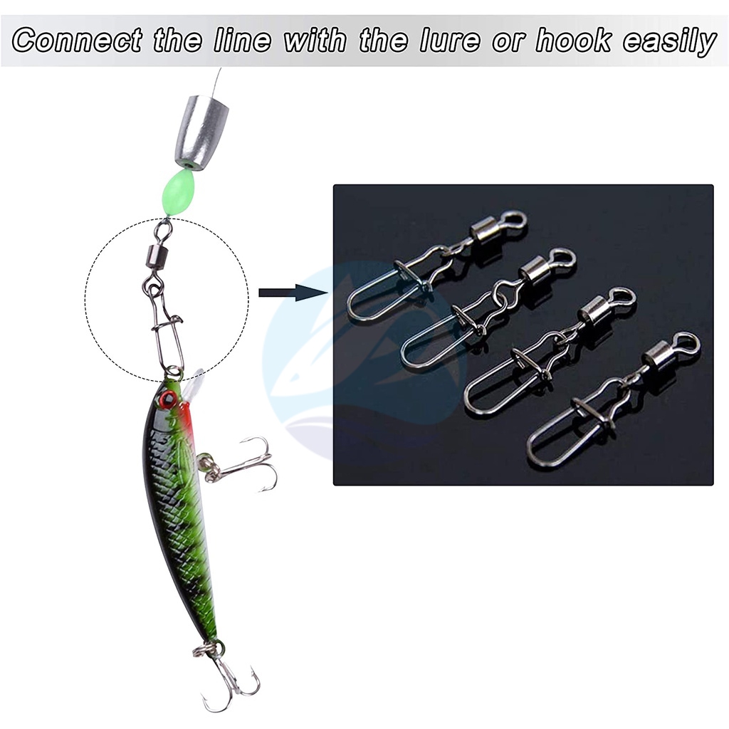 50pcs Bantalan Swivel Snap Connector Pancing Baja Tahan Karat Kotak Kancing Putar Putar Aksesori Umpan Pancing untuk Kai