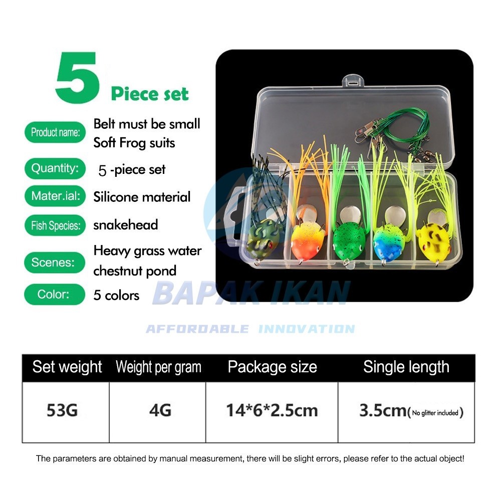 【Setelan】TRU 5pcs/10pcs Set Katak Lembut 3G/4G, Umpan Pancing Sangat Fleksibel dengan 2 Buah Kait Tajam Katak Karet Lemb