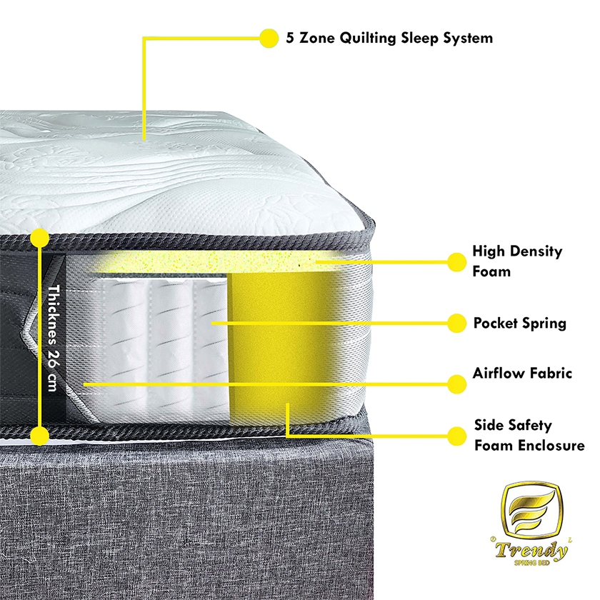 Trendy Pocket Spring 26cm Kasur Spring Bed Vacuum Press Roll Mattress Kasur Dalam Box