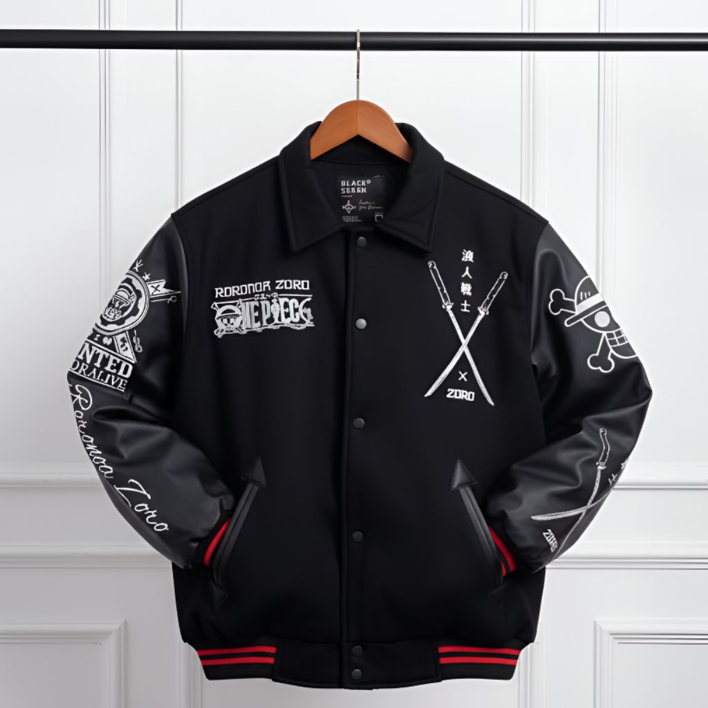 VARSITY JACKET ONE PIECE ZORO BLACK | JAKET BASEBALL BORDIR ORIGINAL | JAKET ANIME VARSITY UNISEX