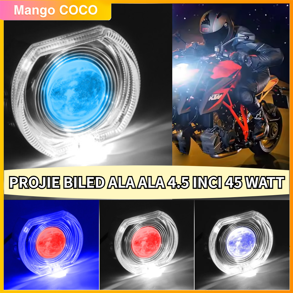 Projie Biled Ala Ala 4 5 inci Shroud Hitam Lampu Biled Cut Off Shroud + Devil Full Aluminium Waterproof Lampu Motor+45WATT