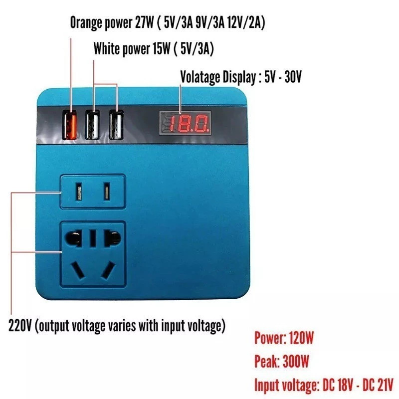 SIJIANG Inverter 21v ke 220V 100W - 3 USB Baterai Makita soket konverter daya multifungsi /Pengisi daya cepat/ DIY Inver