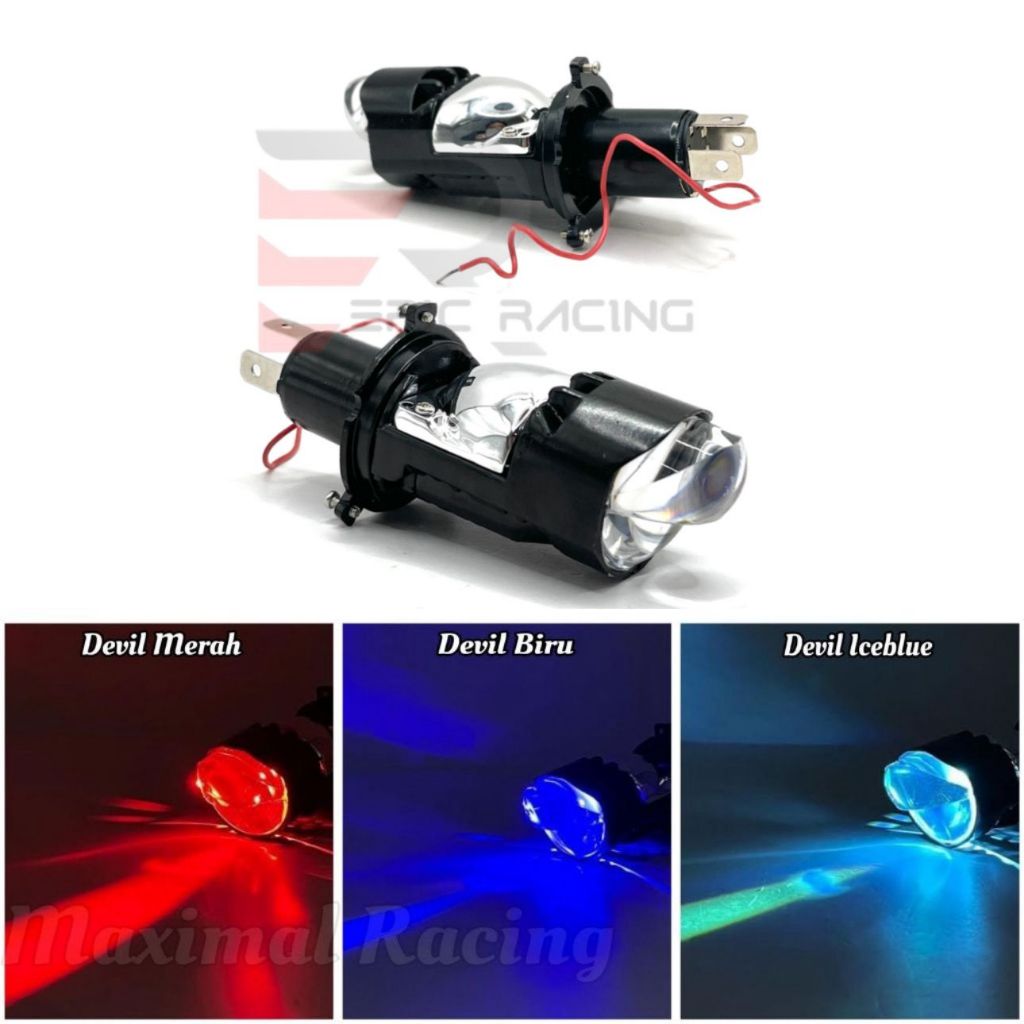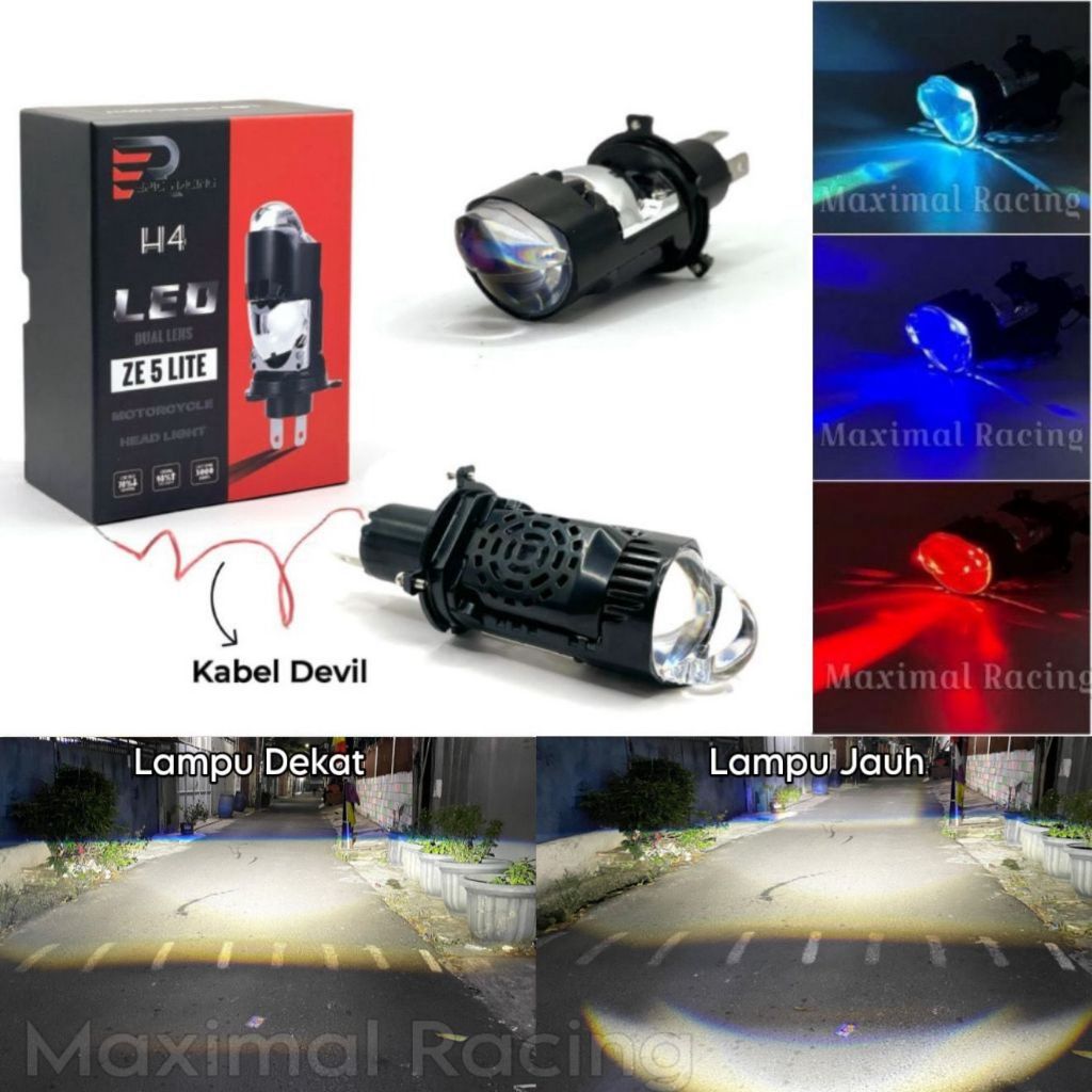 Epicrng Lampu Utama ZE 5 Lite Blue Lens H4 Projector Dengan Devil Eye Plus Kipas Pendingin Full Aluminium