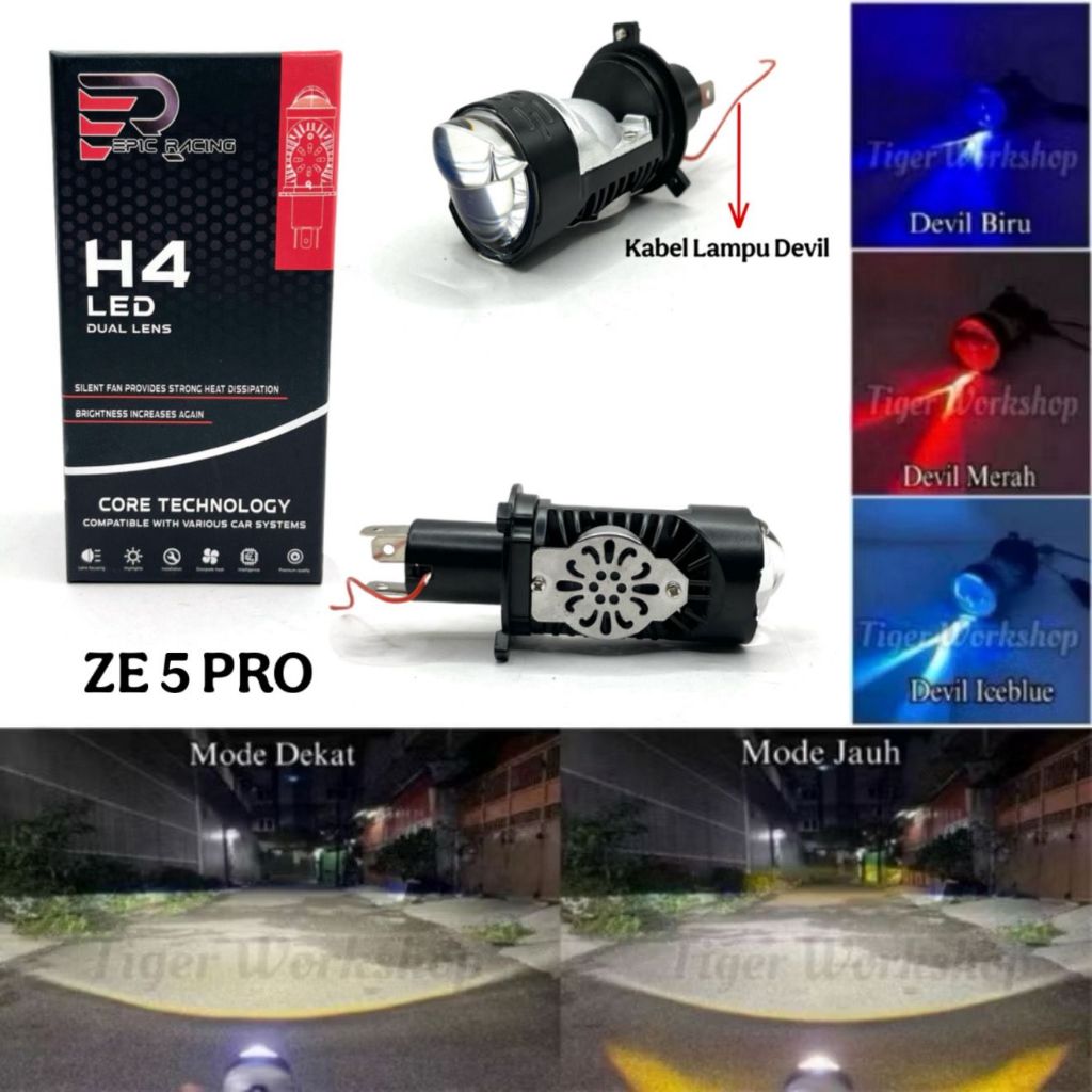 Epicrng Lampu Utama ZE 5 PRO Blue Lens H4 Projector Dengan Devil Eye Plus Kipas Pendingin Full Aluminium Waterproof