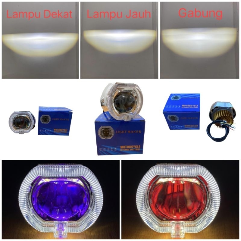 Lampu Utama Proji Biled ala ala Mini Projie ala ala Biled 2.5 Inch Devil & Angel Light Putih-Putih