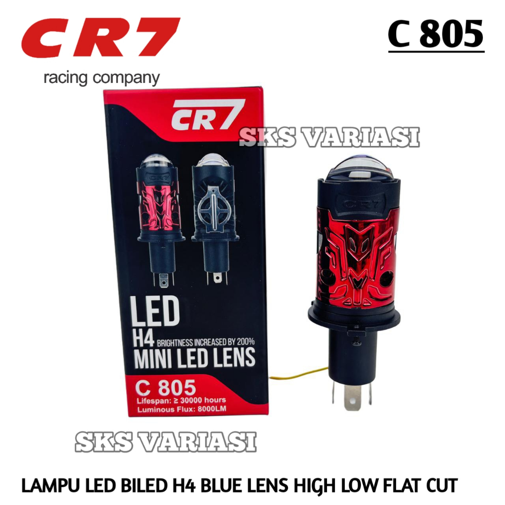 CR7 C805 Lampu Utama LED H4 Biled Projector Blue Lens Plus Devil Laser Kipas Pendingin Motor Mobil