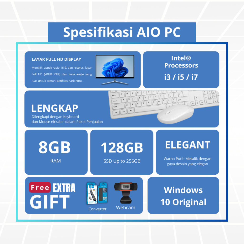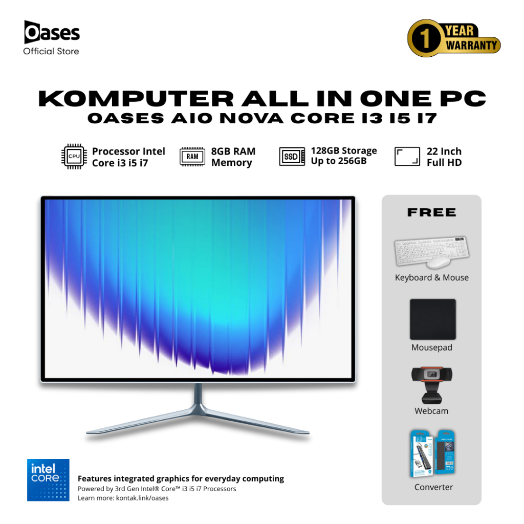 Oases Komputer PC All in One Fullset – i3/i5, RAM 8GB, SSD 128/256GB , Monitor 19/22/24", Windows 10, Siap Pakai