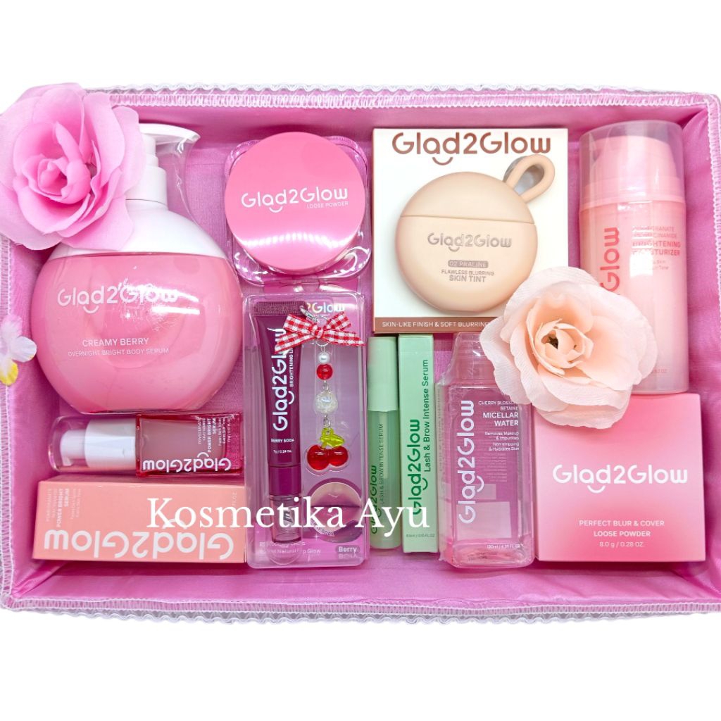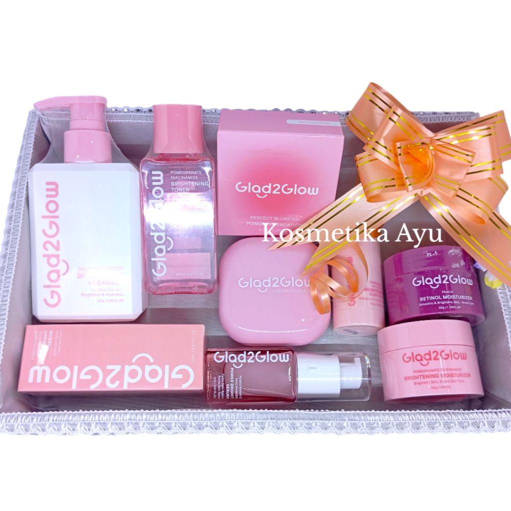 Glad2Glow Paket Skincare Seserahan Gratis Box Seserahan Paket G2G Skincare Make Up