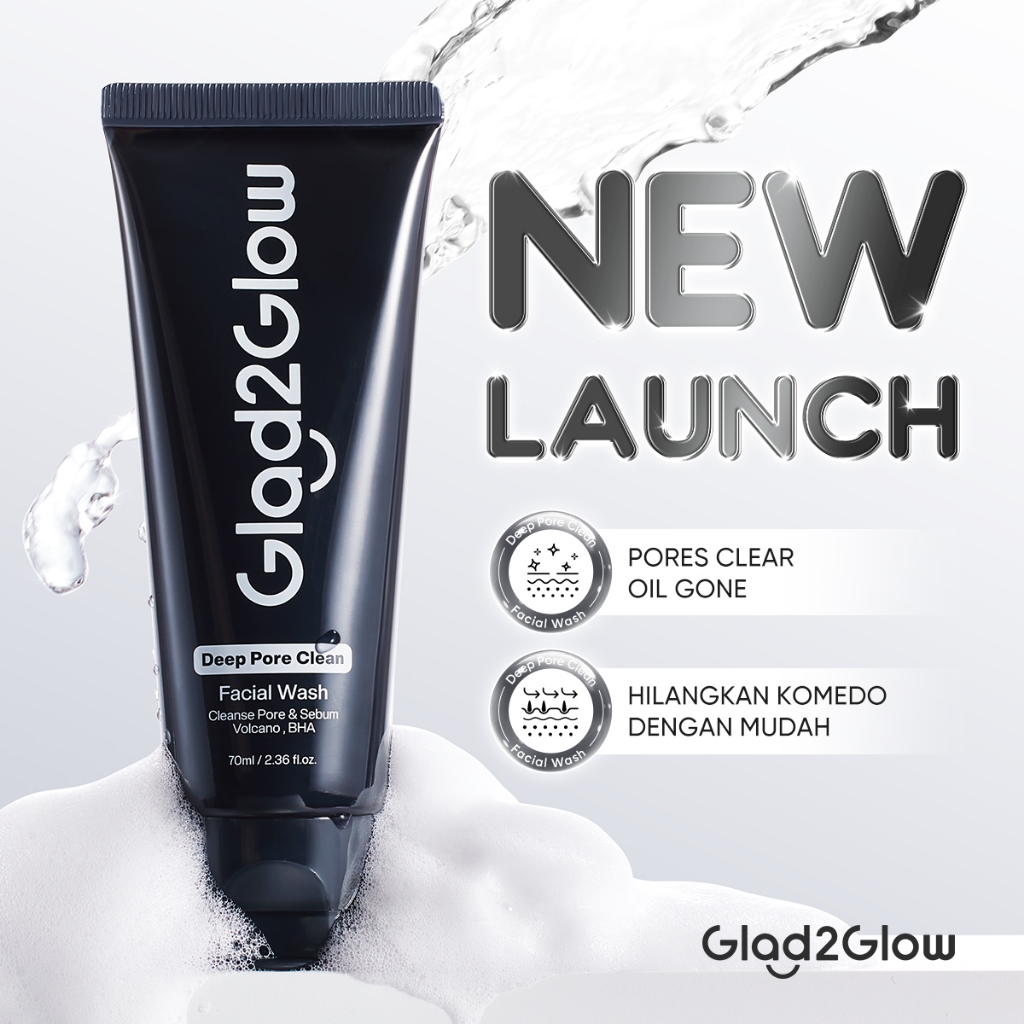 [NEW LAUNCH]Glad2glow Volcanic Ash + BHA Deep Pore Clean Facial Cleanser Mencegah Komedo Face Wash g2g Pencuci Muka