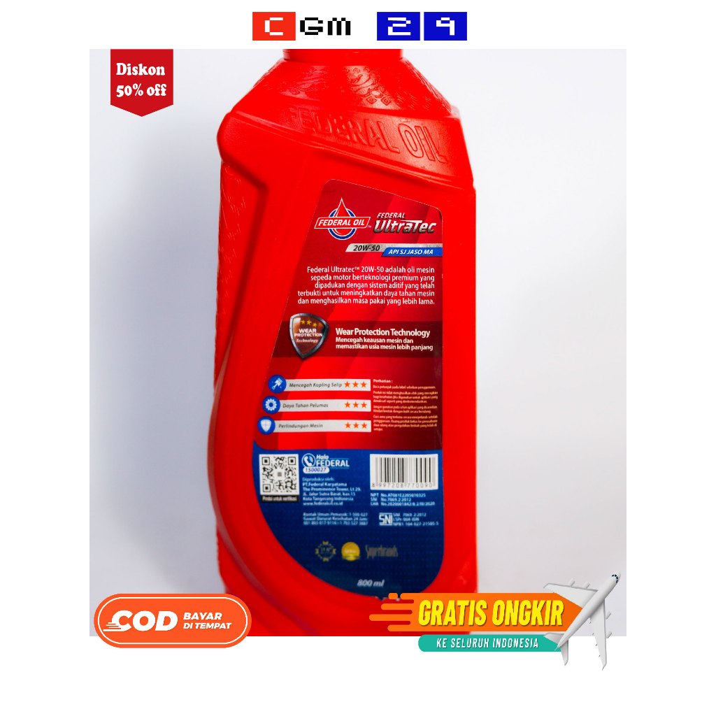 (HARGA ISI 3BOTOL) - OLI ULTRATEC FEDERAL 20W-50 800ML API SJ JASO MA KHUSUS MOTOR BEBEK YAMAHA DAN HONDA DLL
