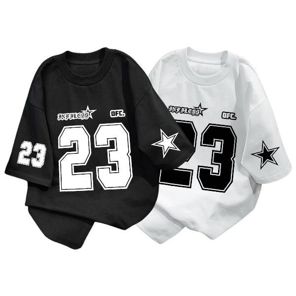 Kaos T-shirt Vintage No 23 Oversize INFILESS Atasan Motif Baju Jersey Olahraga Nomor Angka 23