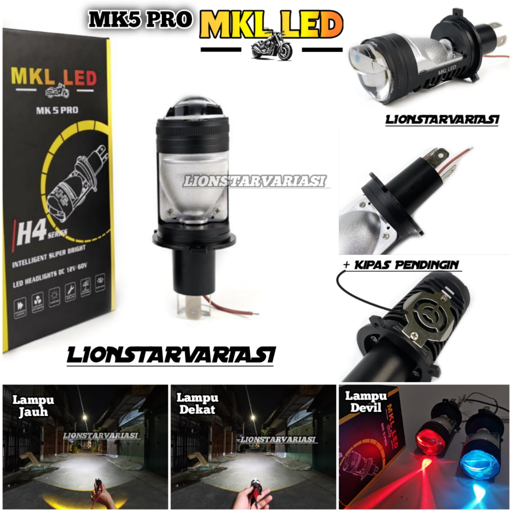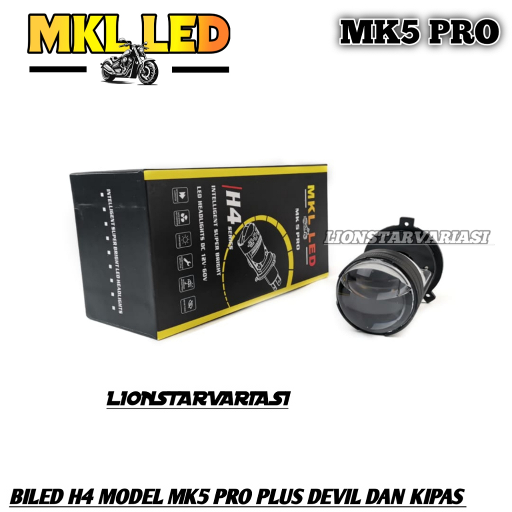 MK5 PRO Lampu Utama LED H4 Biled Projector Plus Devil dan Kipas Pendingin Universal Mobil Motor