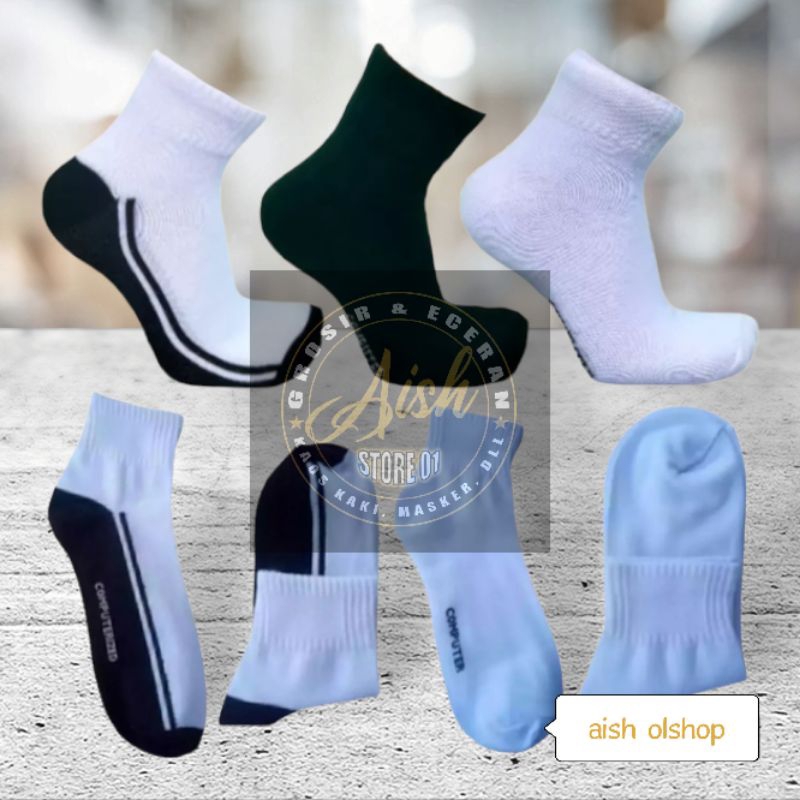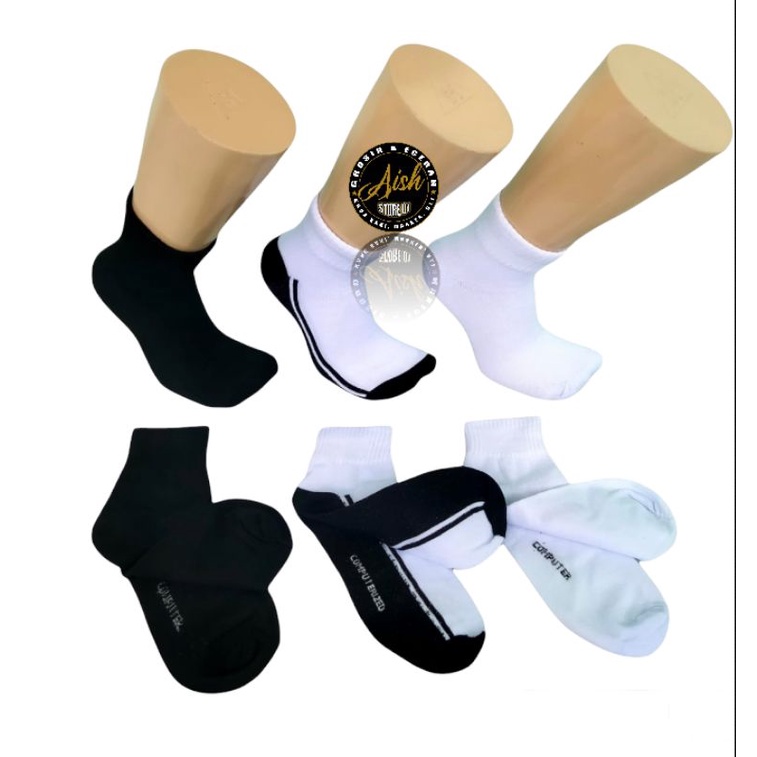3 PASANG KAOS KAKI SEKOLAH WARNA PUTIH, HITAM, PUTIH TELAPAK HITAM # KAUS KAKI SPORT COMPUTER # KAOS KAKI OLAHRAGA 3/4