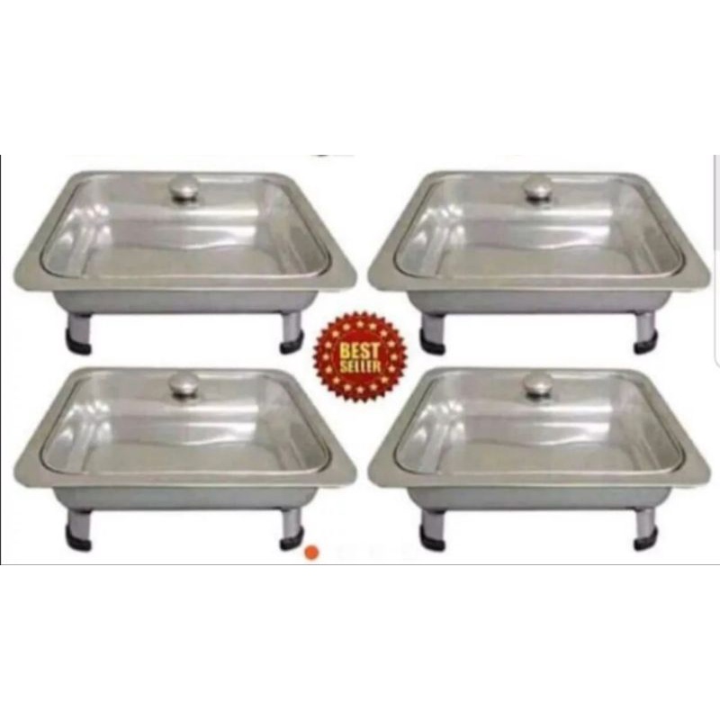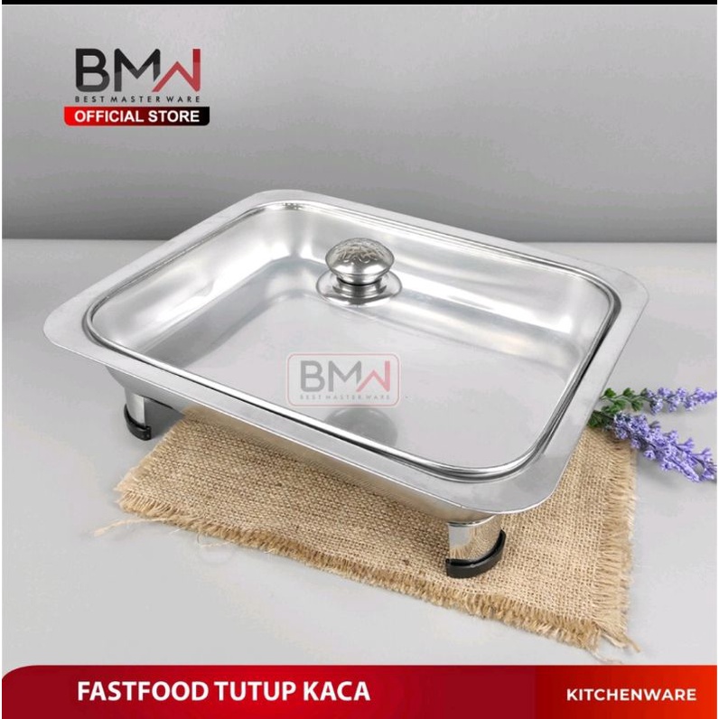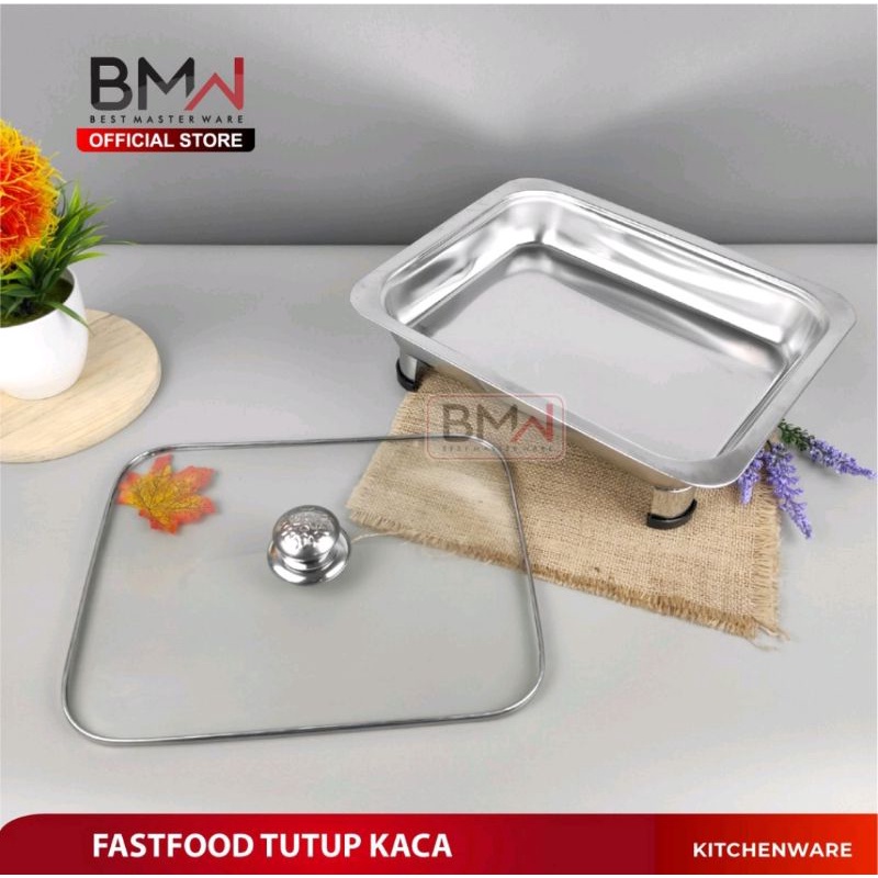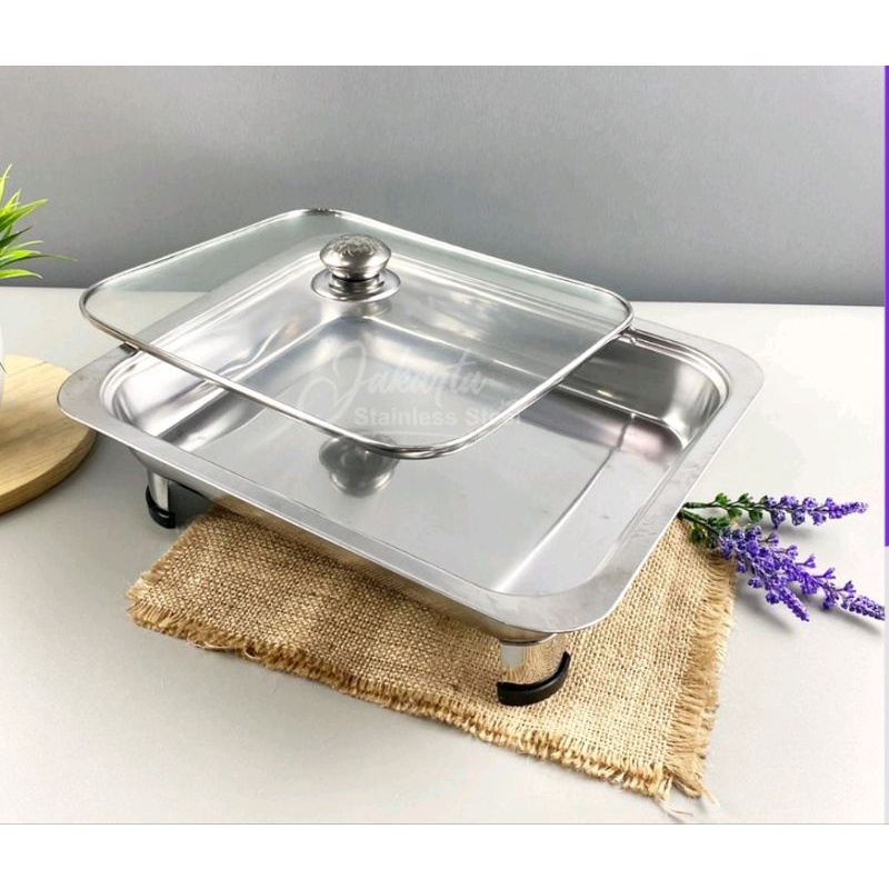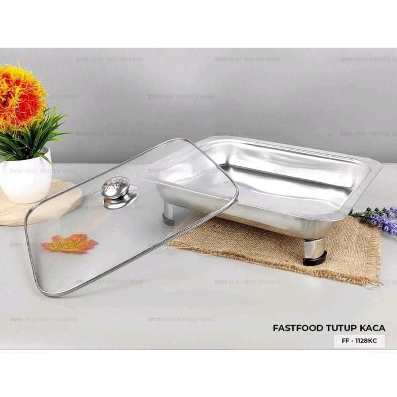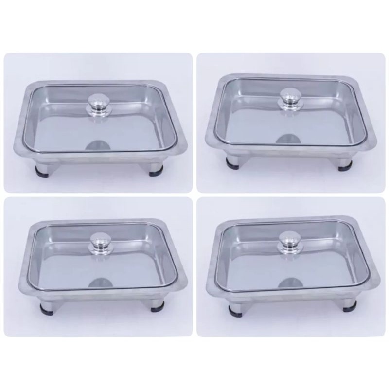 prasmanan segi tutup kaca paket hemat 4Set / fastfood tray tutup kaca stainless steel good quality