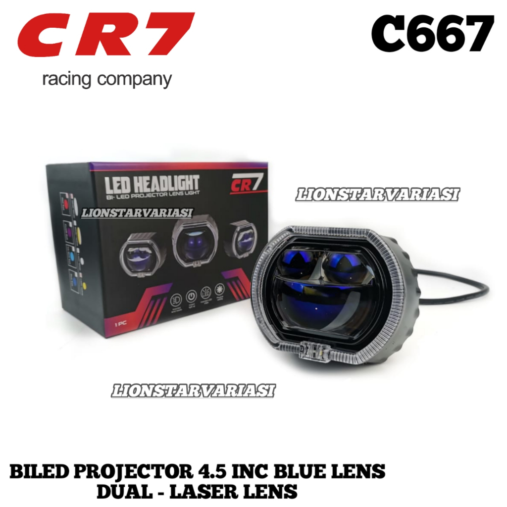 CR7 C667 Biled Projector 4 5 Inch Blue Lens Plus 2 Mata Laser Devil Shroud Kipas High Low Flat Cut