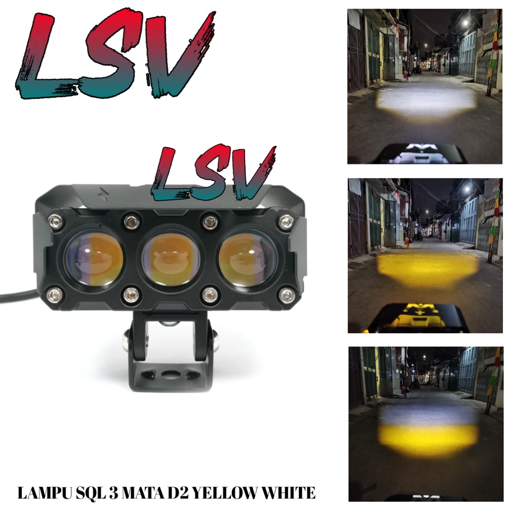 Lampu Tembak Sorot 3 Mata D2 Laser LED CR7 3 Mata Hi Low Putih Kuning Waterproof Foglamp Mobil Motor