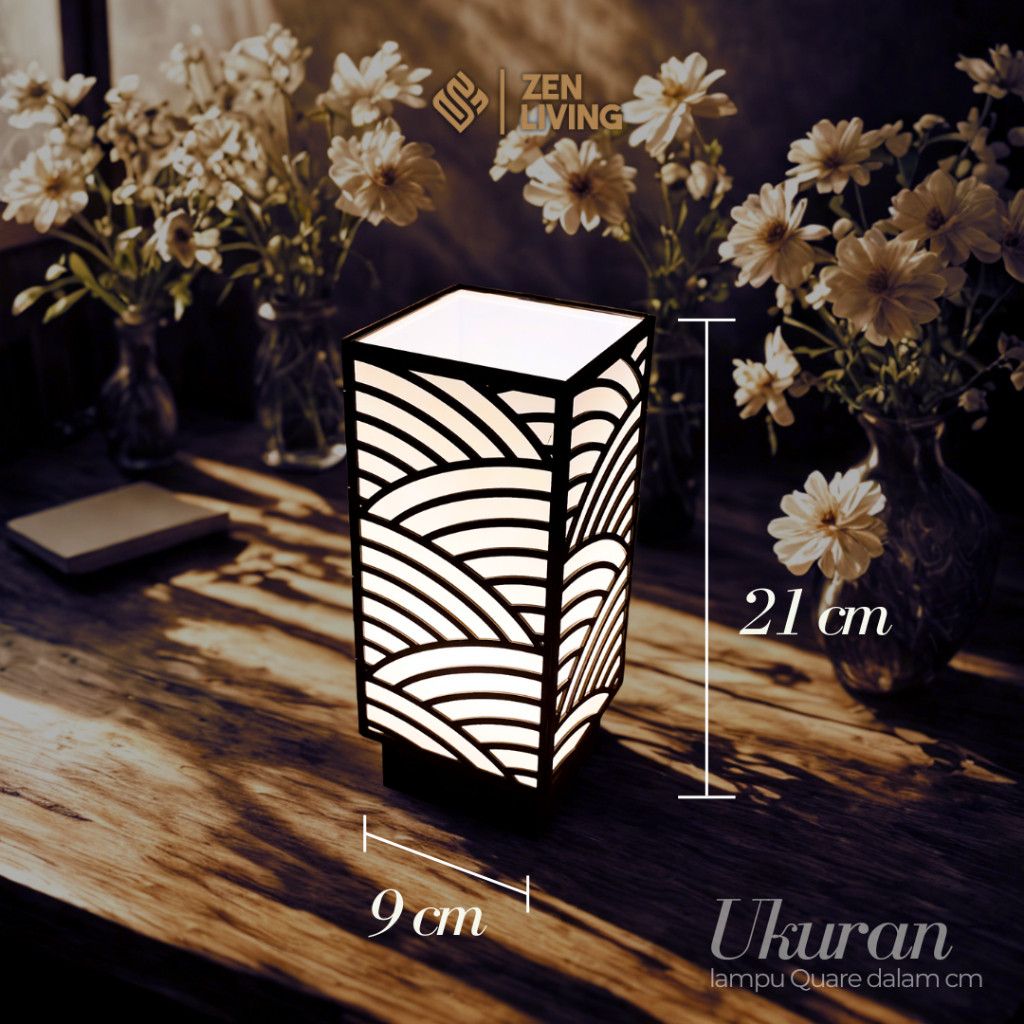 Lampu Aesthetic Quare Meja Kamar Tidur Elegan Minimalis Motif Oriental Bohlam LED Fitting E27