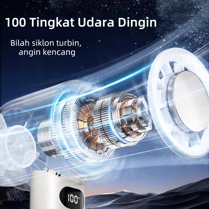 50000mAh Kipas Angin Mini Portable tahan lama 24 jam High speed Turbo USB Tangan 16500RPM Genggam Kipas Strong Wind type C Adjustable 100 Gear Wind LED Digital Display