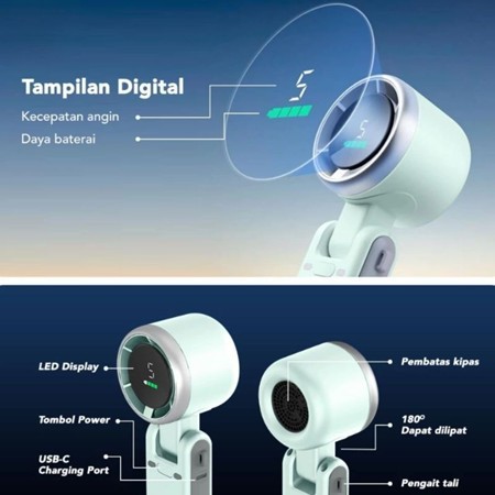 Kipas Angin Turbo Strong Portable Handheld Rechargeable Mini Fan Lipat High Speed 15000RPM