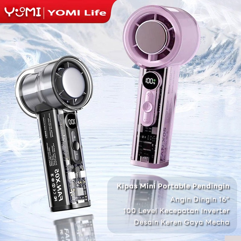 Kipas Angin AC Mini Portable High Speed Strong Wind 100 Gear Handheld Mini Fan Kompres Dingin 3000mAh Tahan Lama LCD Display Pendingin Cepat