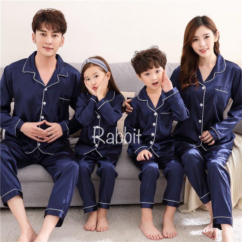 SATIN NAVY PP bisa couple set family bajutidur piyama satin polos exclusive lengan panjang celana panjang