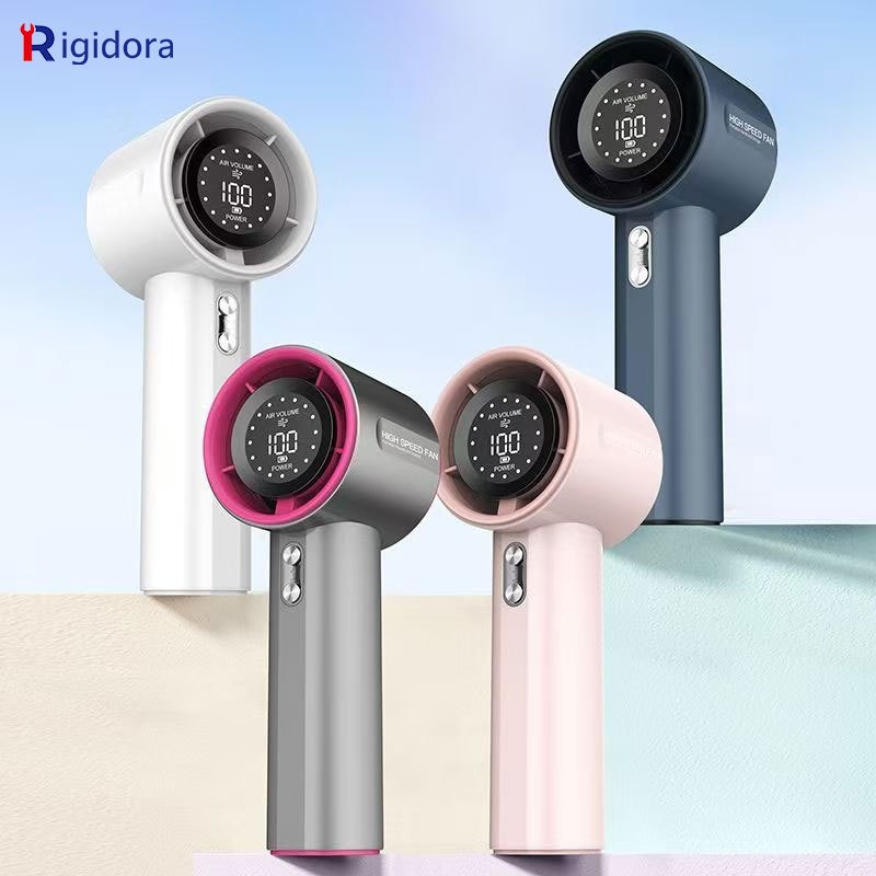 Rigidora High speed Portable Handheld Fan Mini kipas Strong Wind 100 Gear Wind Speed kipas angin Digital Display Adjustable Turbo kipas tangan untuk olahraga luar ran dan pendinginan cepat 17000Rpm