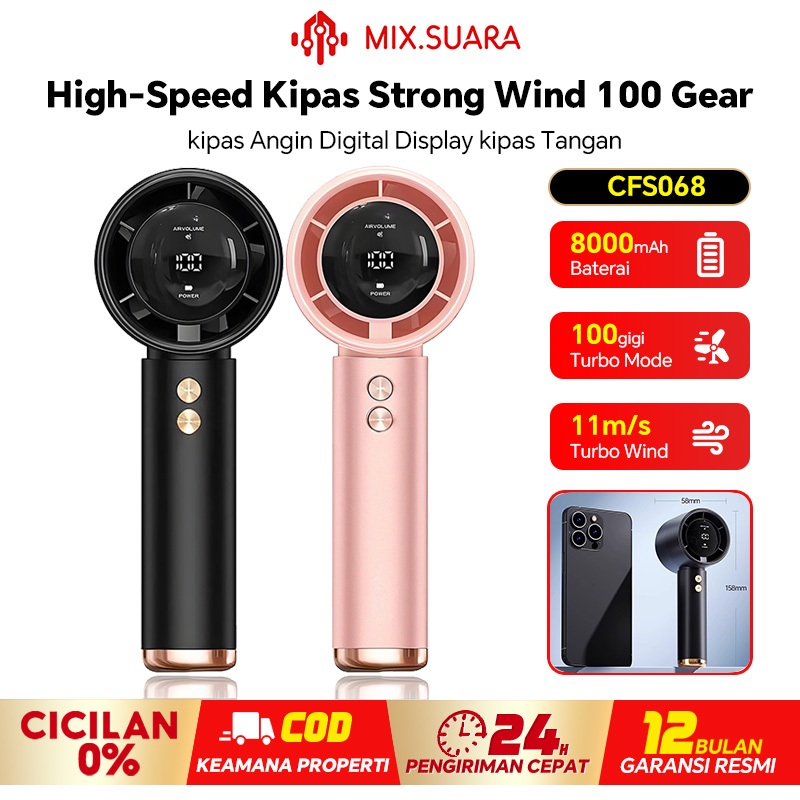 MIX SUARA Kipas Angin Mini Portable USB Genggam Layar LED Angin Kencang 100 High Speed Handheld Fan Adjustable Fan Speed Digital Display N68