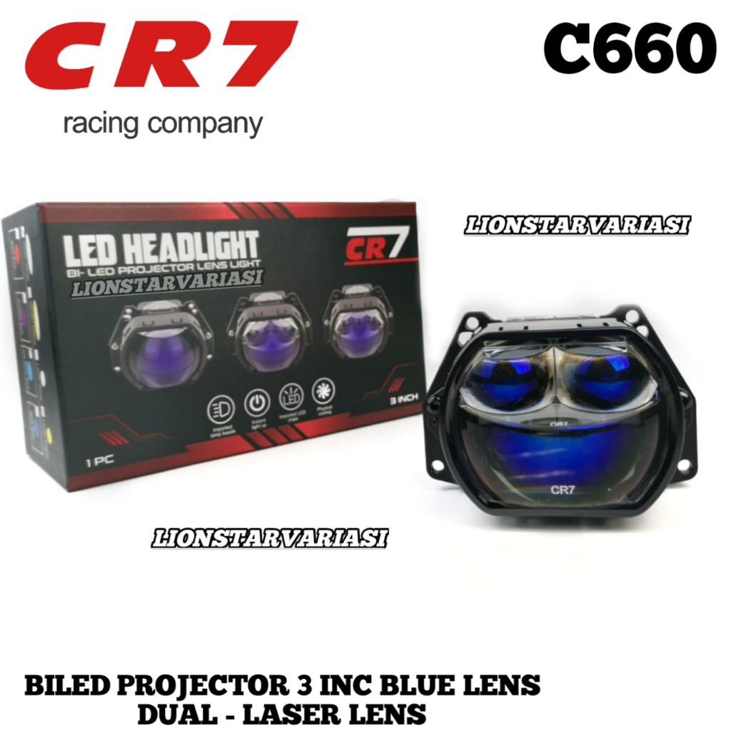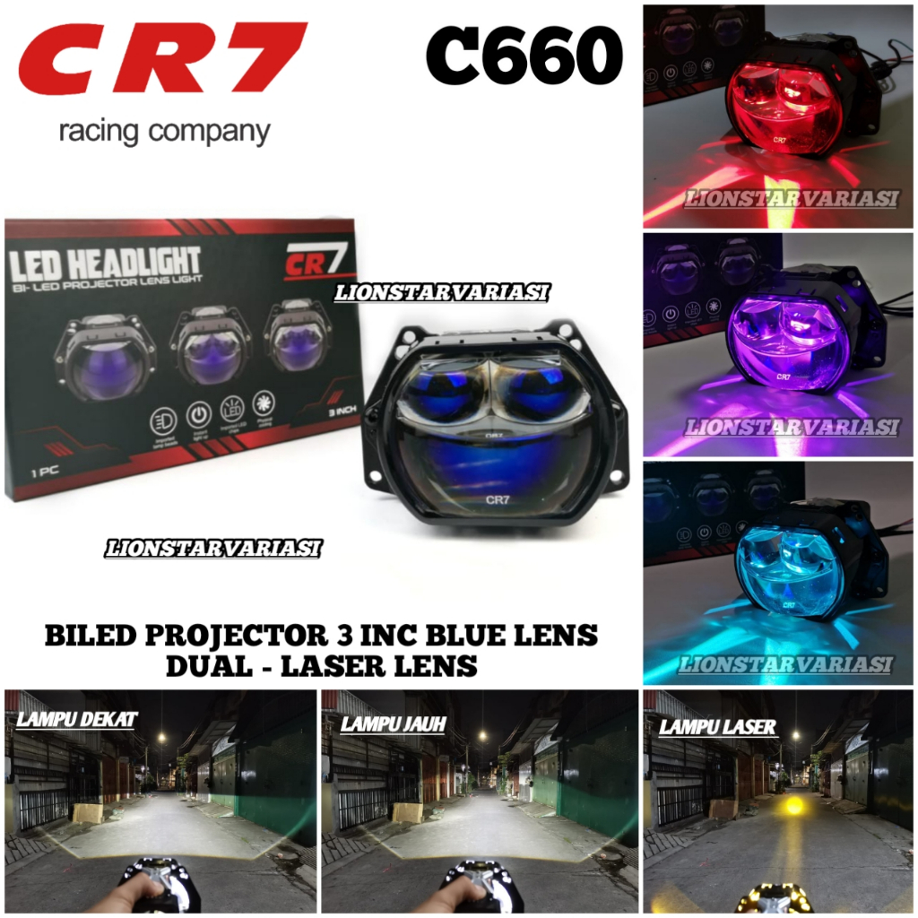 CR7 C660 Biled Projector 3 Inc Blue Lens Plus 2 Mata Laser Devil dan Kipas Premium High Low Ngedim