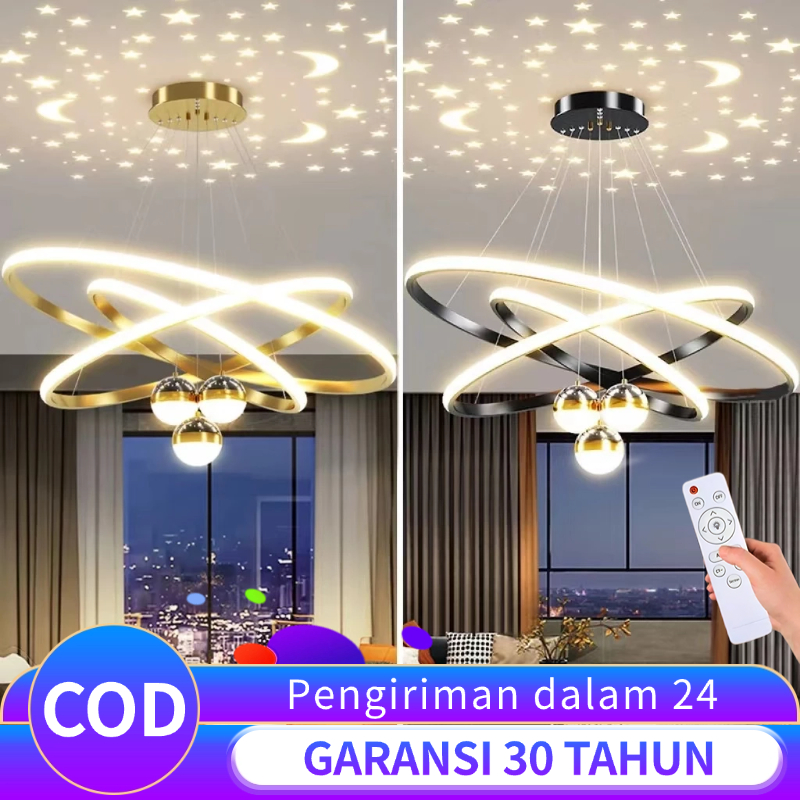 30 tahun sepuluh tahun Lampu Gantung 3 Ring 3 Warna LED Chandelier Sederhana Meja Makan R Makan R Tamu Kamar Tidur Murah