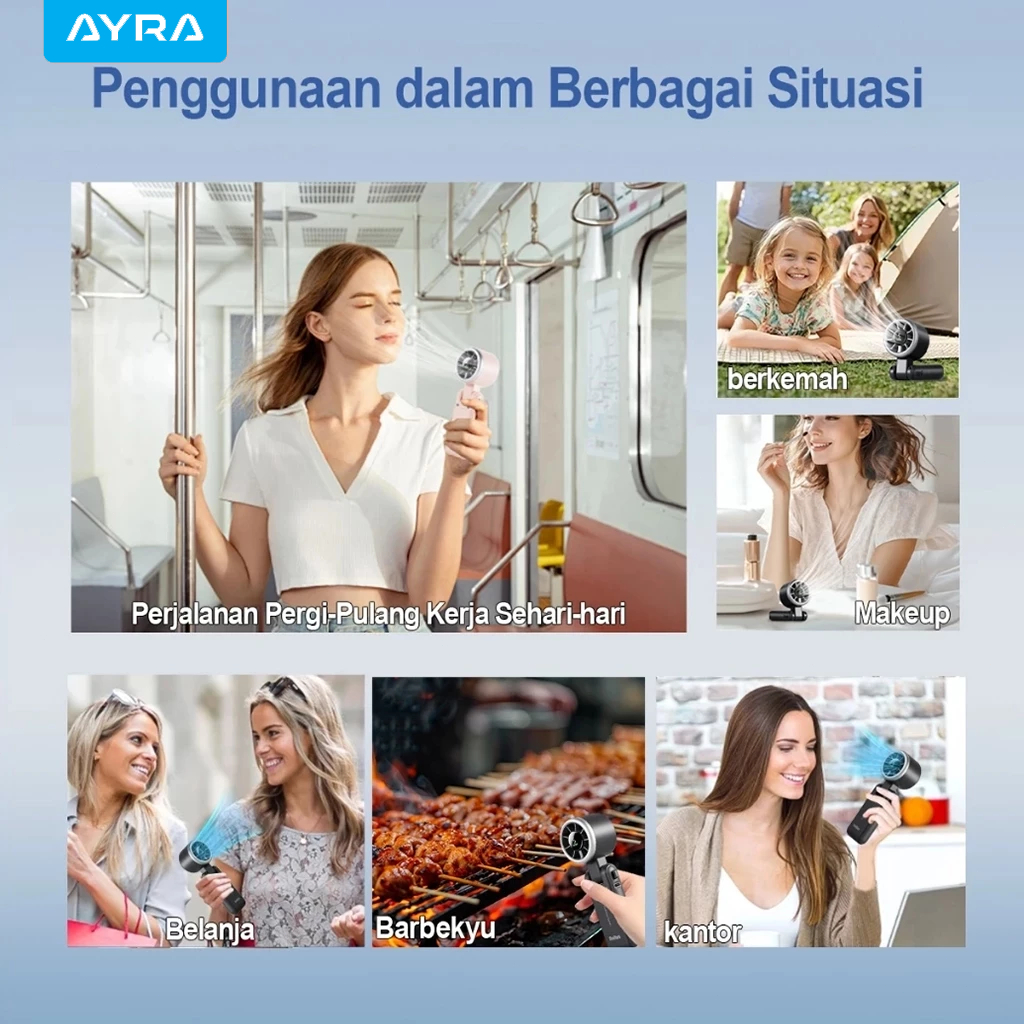 AYRA Mini Kipas Angin Portable Handheld Stand up Desktop Fan High speed Turbo Strong Wind Adjustable Digital Display USB Rechargeable