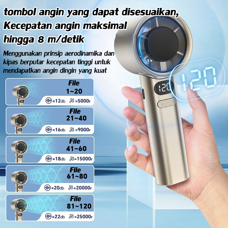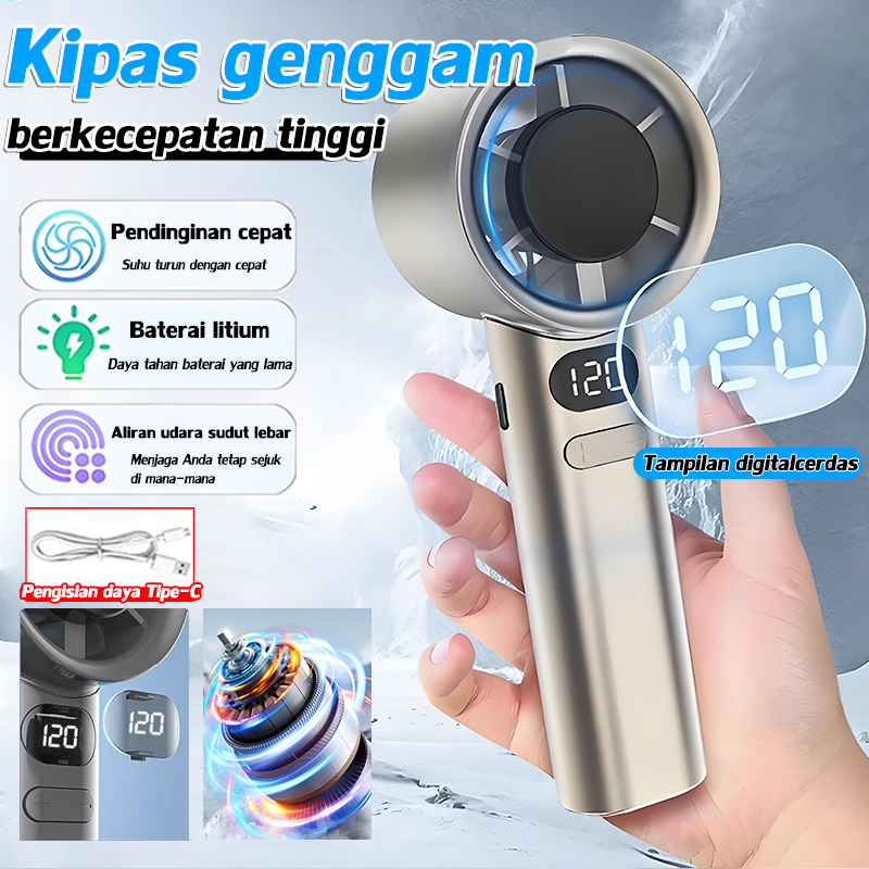 Mini Fan Kipas Angin Portable Kipas Angin Turbo Portabl Kipas Mini Portable Tahan Lama High SpeedAdjustable WindSmart Display LED