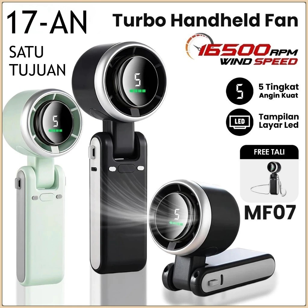 Kipas Angin Turbo Strong Portable Handheld Rechargeable Mini Fan Lipat High Speed 15000RPM