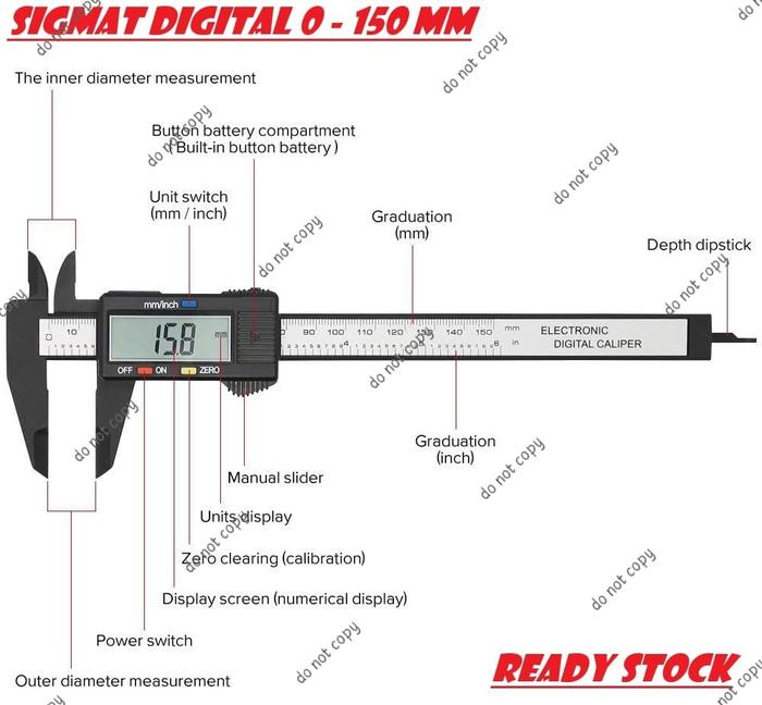 SALE !! JANGKA SORONG SIGMAT DIGITAL STAINLESS VERNIER CALIPER ALAT UKUR 150MM TERMURAH