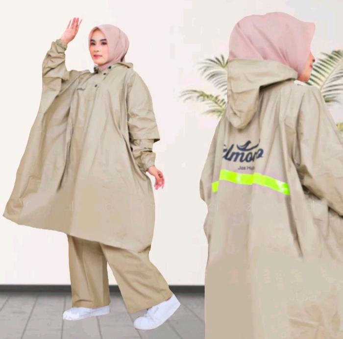 Murah jas hujan setelan ponco celana super jumbo merek elmundo 716 - coklat/cream Elegan