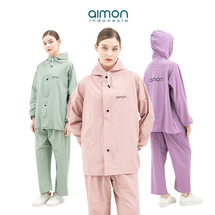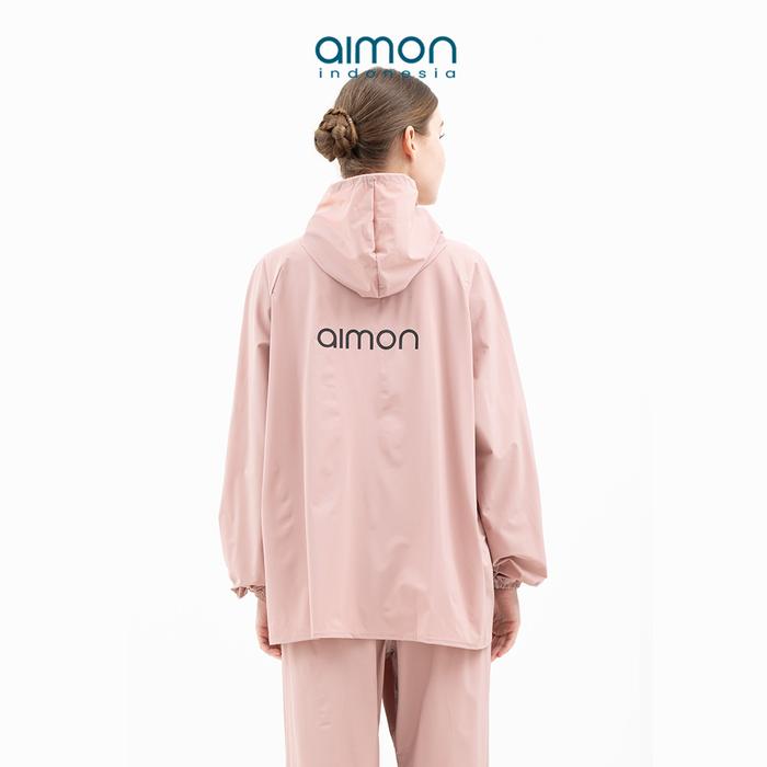 Murah AIMON Jas Hujan Setelan Dewasa Mantel Anti Air PVC 0.25 Tebal Elastis - Dusty Rose ALL SIZE BB 40KG-80KG Keren