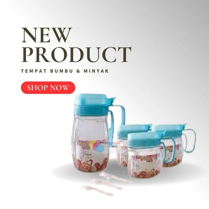Terlaris Tempat Bumbu Dapur Set Aesthetic Botol Toples Wadah Bumbu 4in1 - Biru Elegan