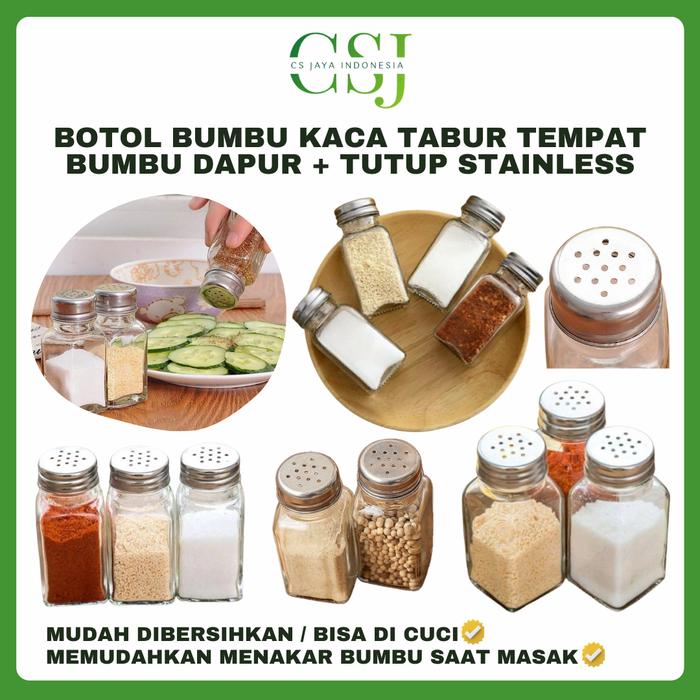 Promo Botol Bumbu Kaca T4bur Tempat Bumbu Dapur + Tutup Stainless - BOTOL BUMBU Keren