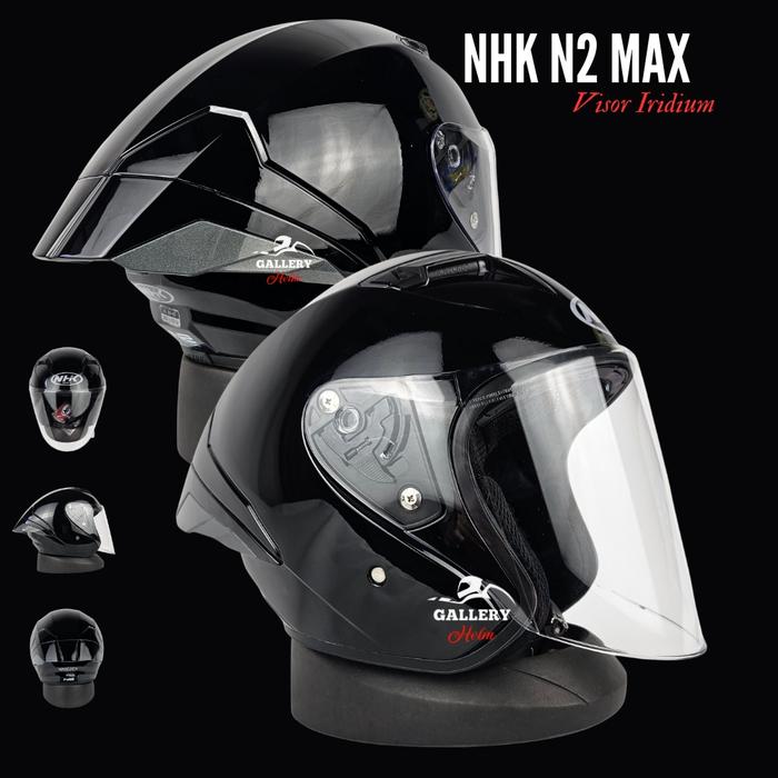 HELM NHK N2 MAX BLACK GLOS SOLID ORIGINAL PAKET GANTENG | RHD LENS | HELM HALF SINGLE VISOR SNI - BLUE REVO, M