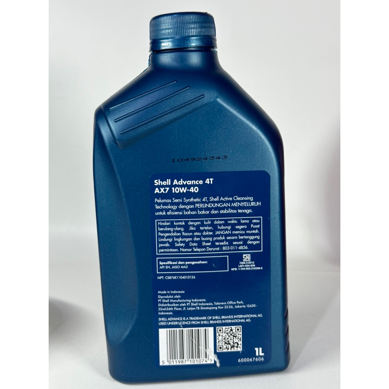 Oli Shell Advance AX7 SAE10W-40 1LITER Oli Mesin Motor Shell Advance AX7 AX 7 1lt