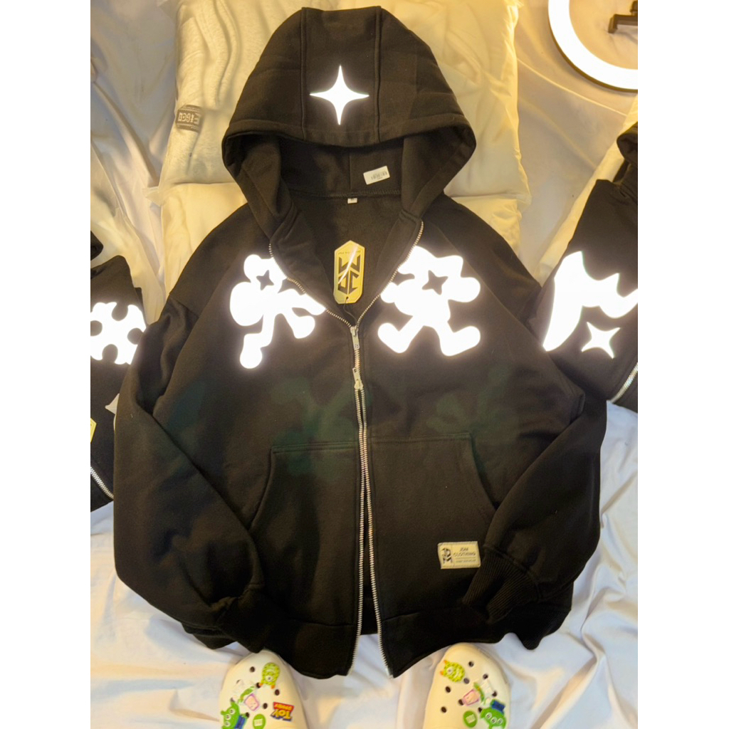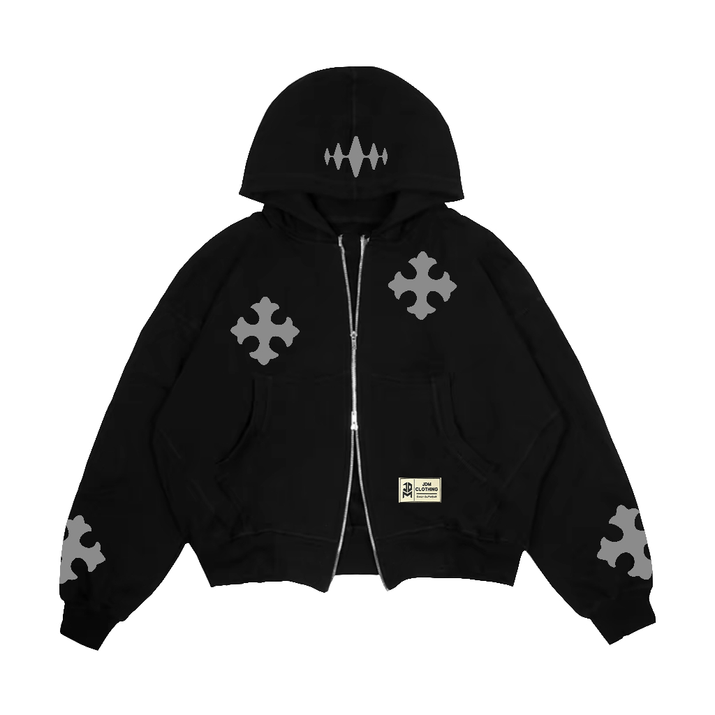 JDMCLOTHING Zipper Boxy Hoodie Reflective Menyala Double Kepala Zipper Fleece 280 Gsm Unisex