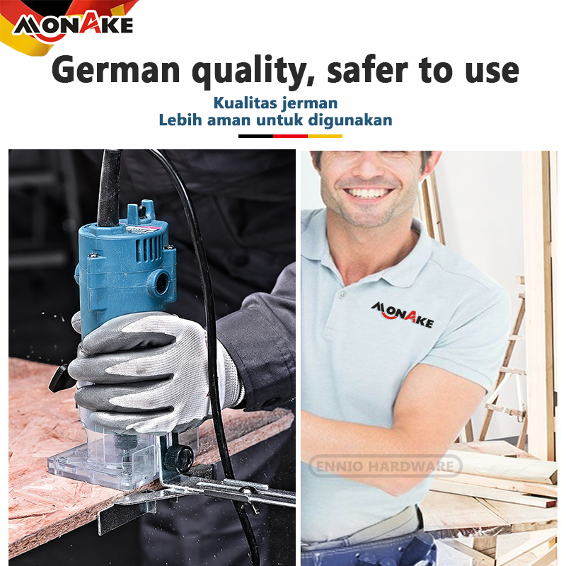 MONAKE German tool Wood Trimmer Kayu Set 6mm 1/4 Inchi Mesin Router Profil List Kayu Trimer Ruter MK3709