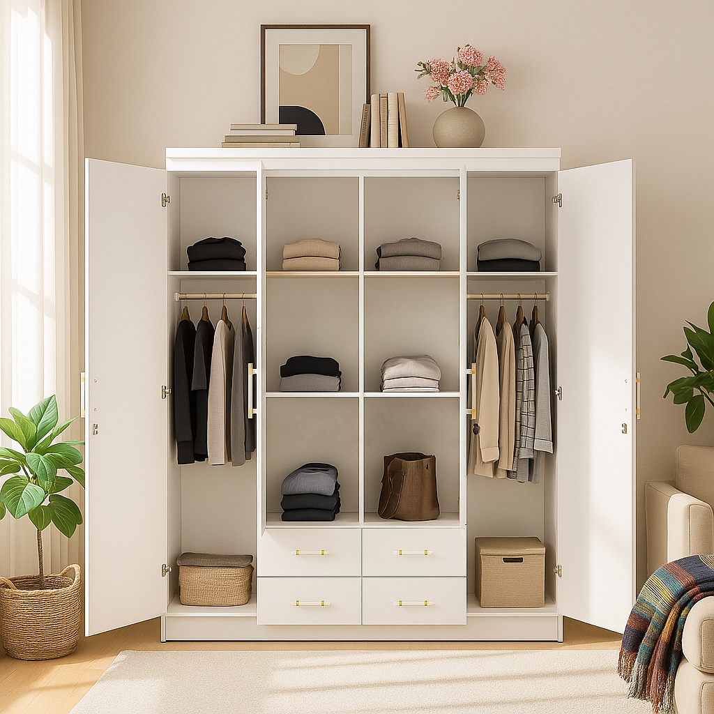 Putih Polos, Putih Oak, Putih Abu-abu, Lemari 4 Pintu
