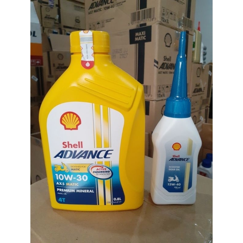 Paket Oli Shell Advance AX5 Matic 10W-30 800ml dan Oli Gardan Shell 120ml AX5 ScooterOrisinil 1Set